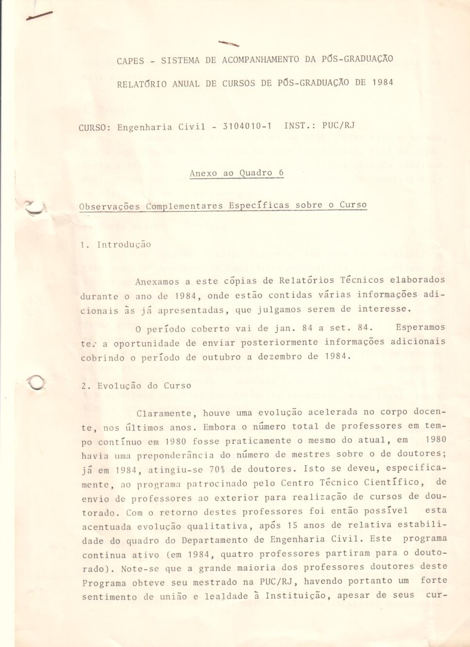 Relatório anual do curso de pós-graduação em Engenharia Civil, contendo a Introdução e a Evolução do Curso.