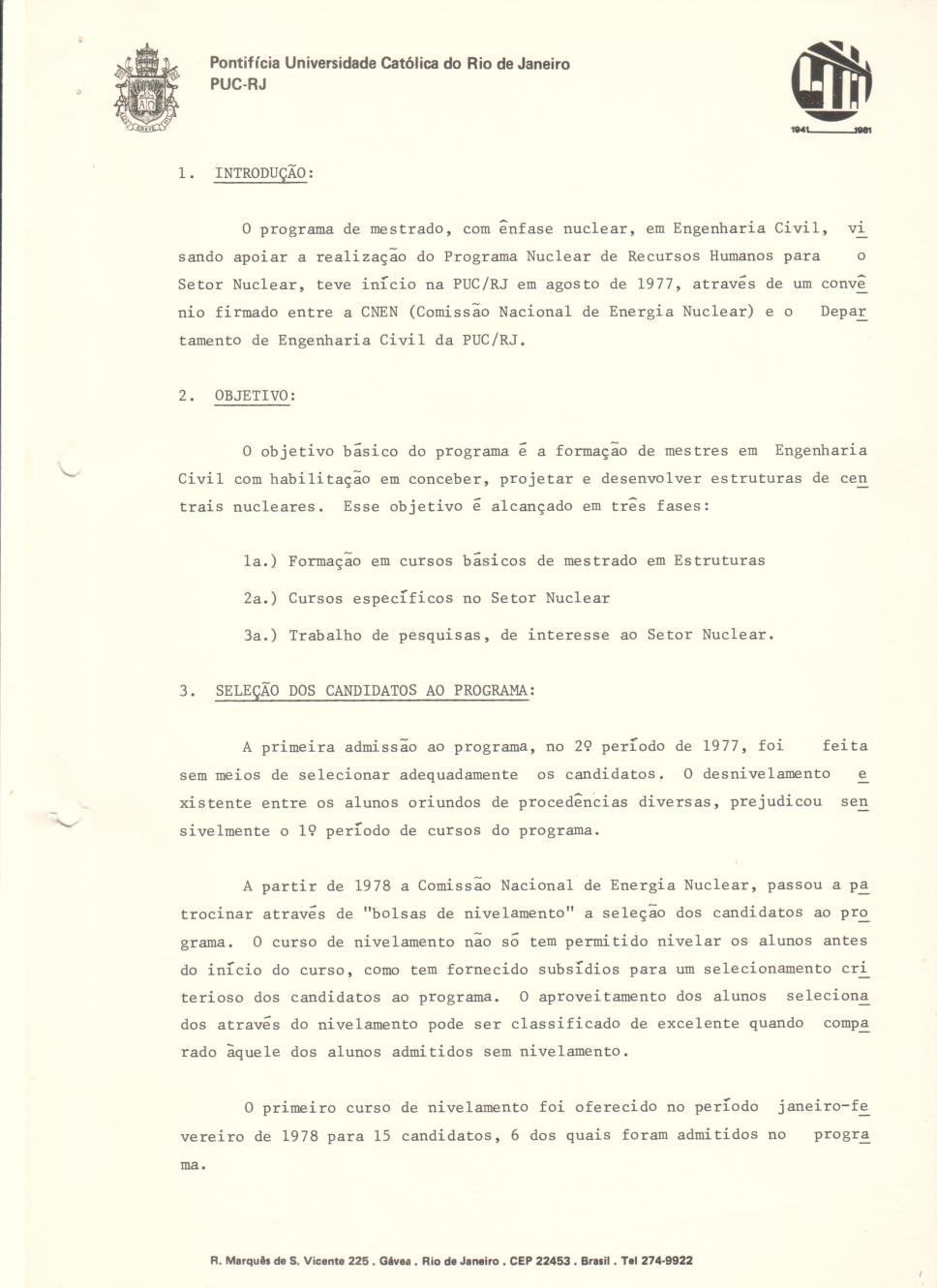 Relatório técnico do programa de mestrado em Engenharia Civil com Ênfase Nuclear. Introdução e Objetivo. Convênio com a CNEN - Comissão Nacional de Energia Nuclear.