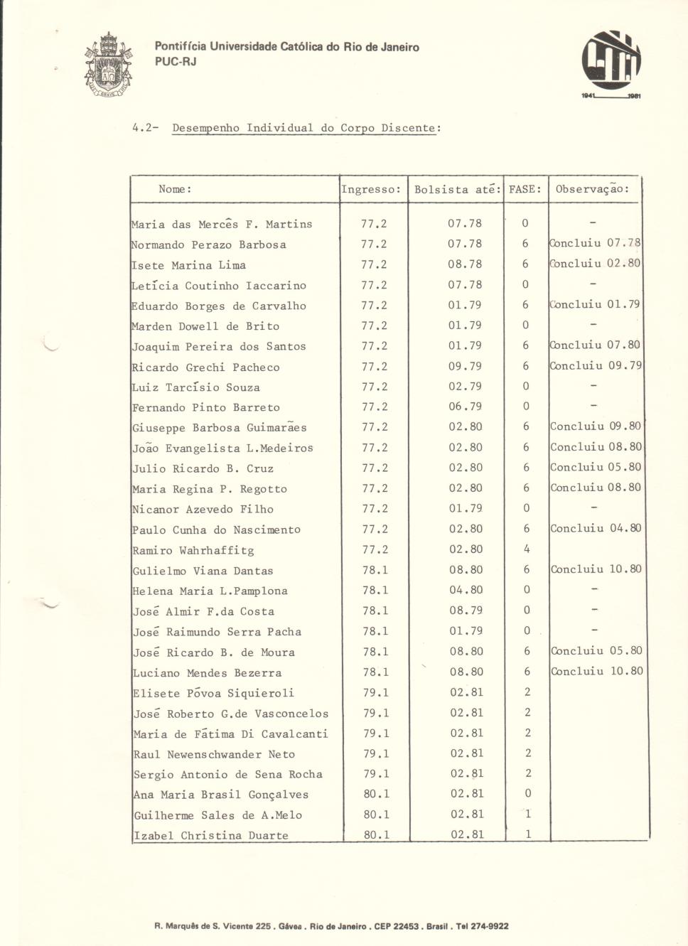 Relatório técnico do programa de mestrado em Engenharia Civil com Ênfase Nuclear. Desempenho Individual do Corpo Discente.