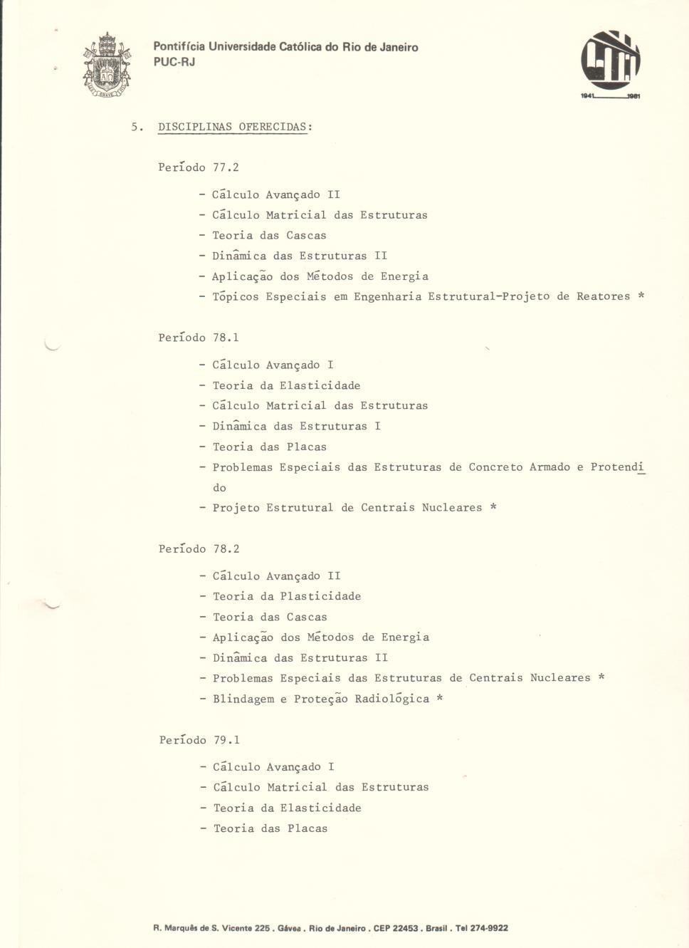 Relatório técnico do programa de mestrado em Engenharia Civil com Ênfase Nuclear. Disciplinas Oferecidas.
