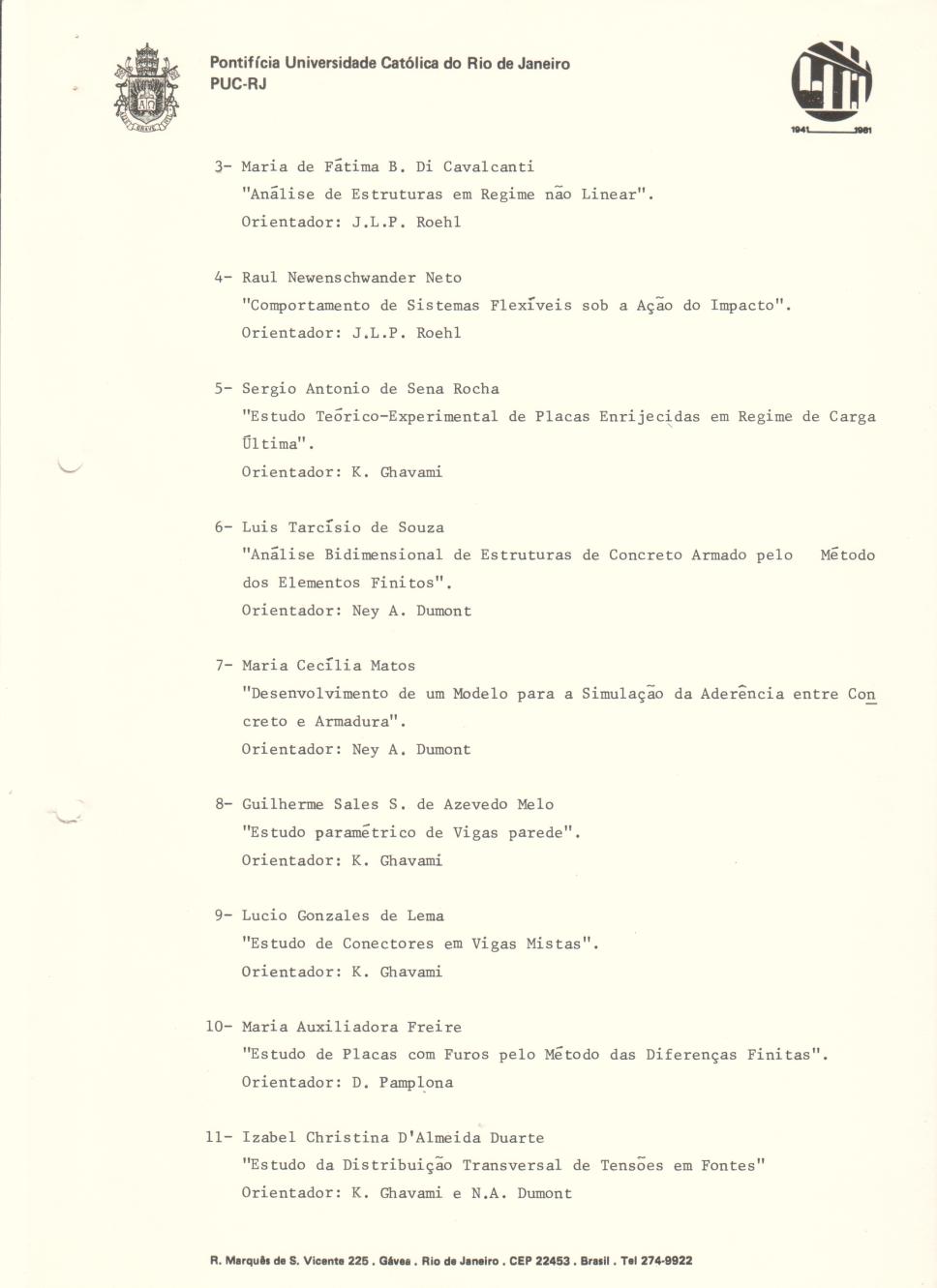 Relatório técnico do programa de mestrado em Engenharia Civil com Ênfase Nuclear. Alunos e pesquisas em desenvolvimento.
