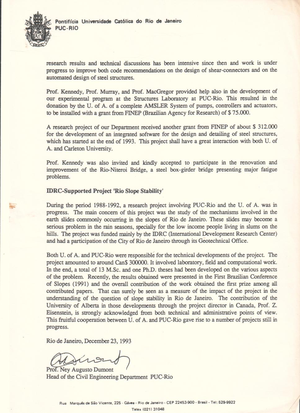 University of Alberta to the Development of the Civil Engineering Ph.D Program at PUC-Rio. Histórico da colaboração entre a PUC-Rio e a University of Alberta.