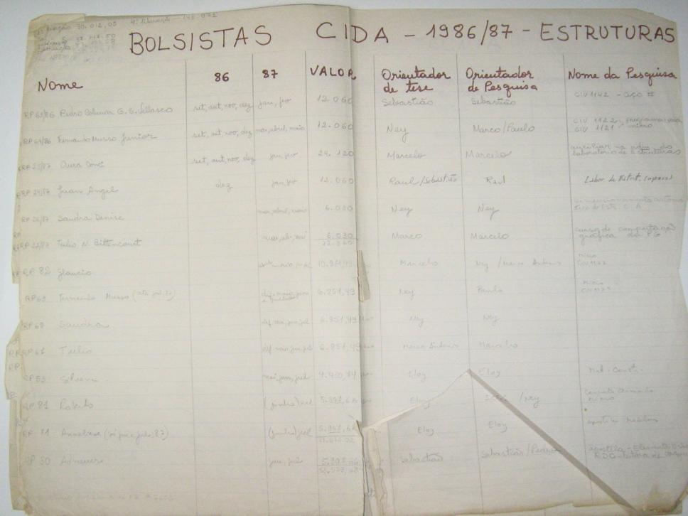 Bolsistas CIDA 1986/87 - Estruturas