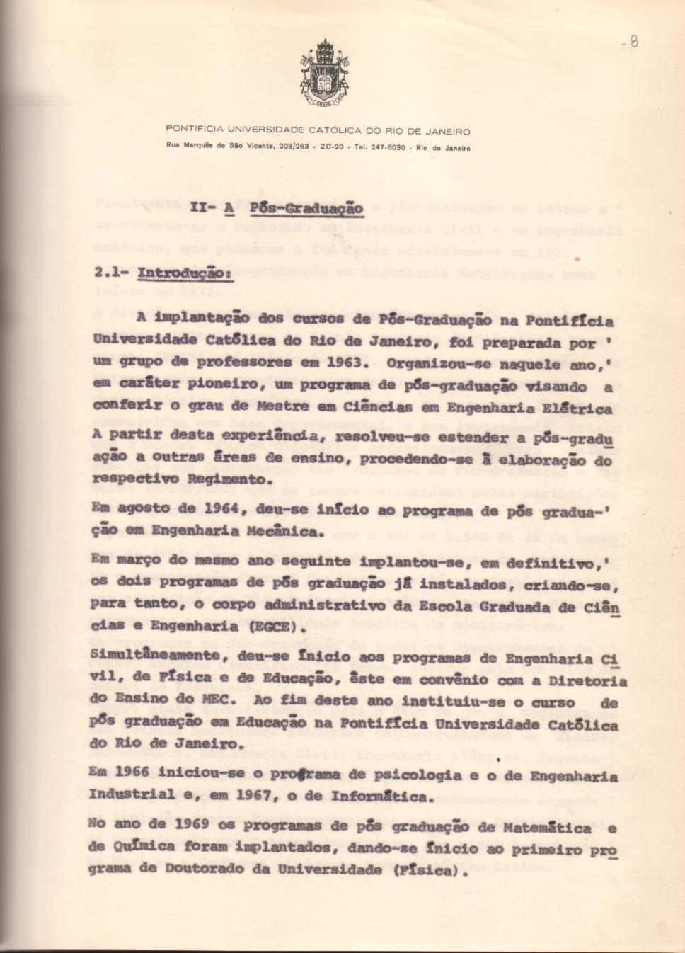 Página 08. Resumo descritivo da pós-graduação na PUC-Rio.