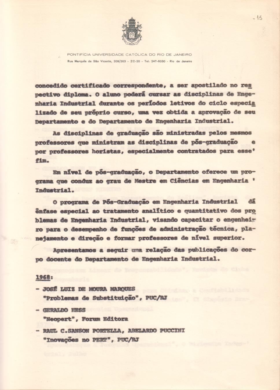 Página 15. Natureza jurídica do departamento: sua tradição de ensino e pesquisa. Contém relação das publicações do corpo docente, ano a ano, desde 1968