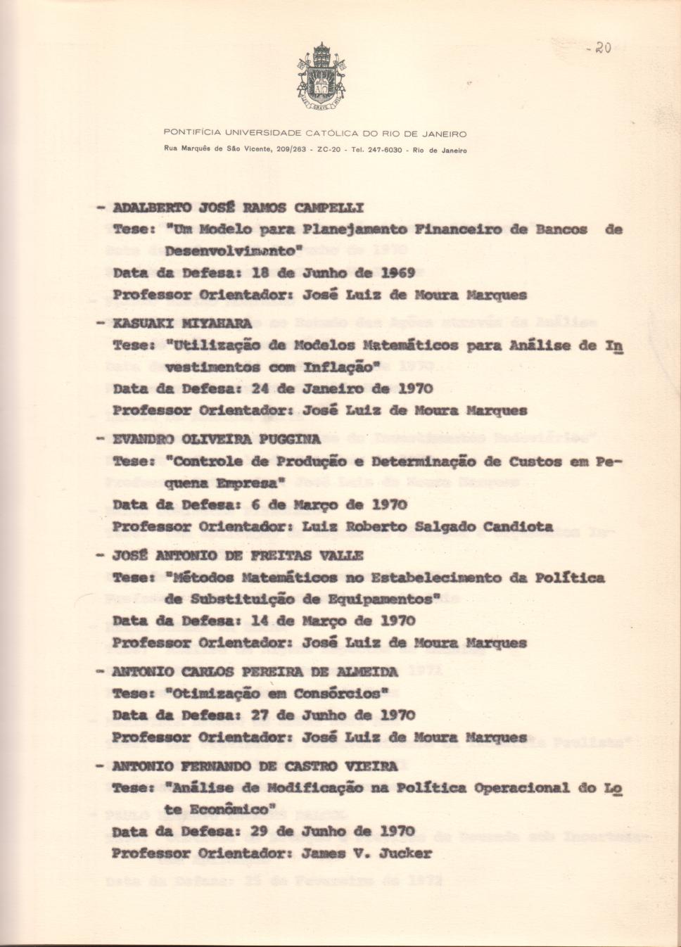 Página 20. Relação das publicações do corpo docente, ano a ano, desde 1968