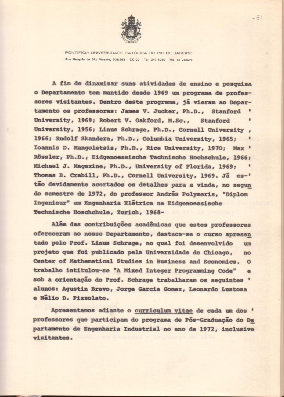 Página 31. Professores visitantes que já participaram do programa, de 1969 até 1972.