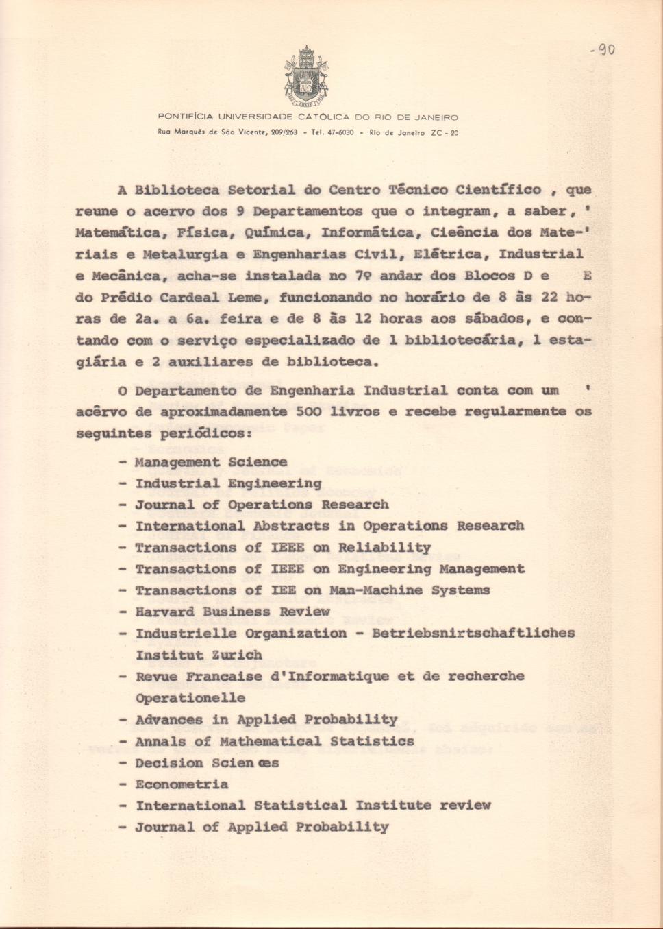 Página 90. Sobre a Biblioteca Setorial do CTC, contendo lista de periódicos com os quais conta o Departamento de Engenharia Industrial.