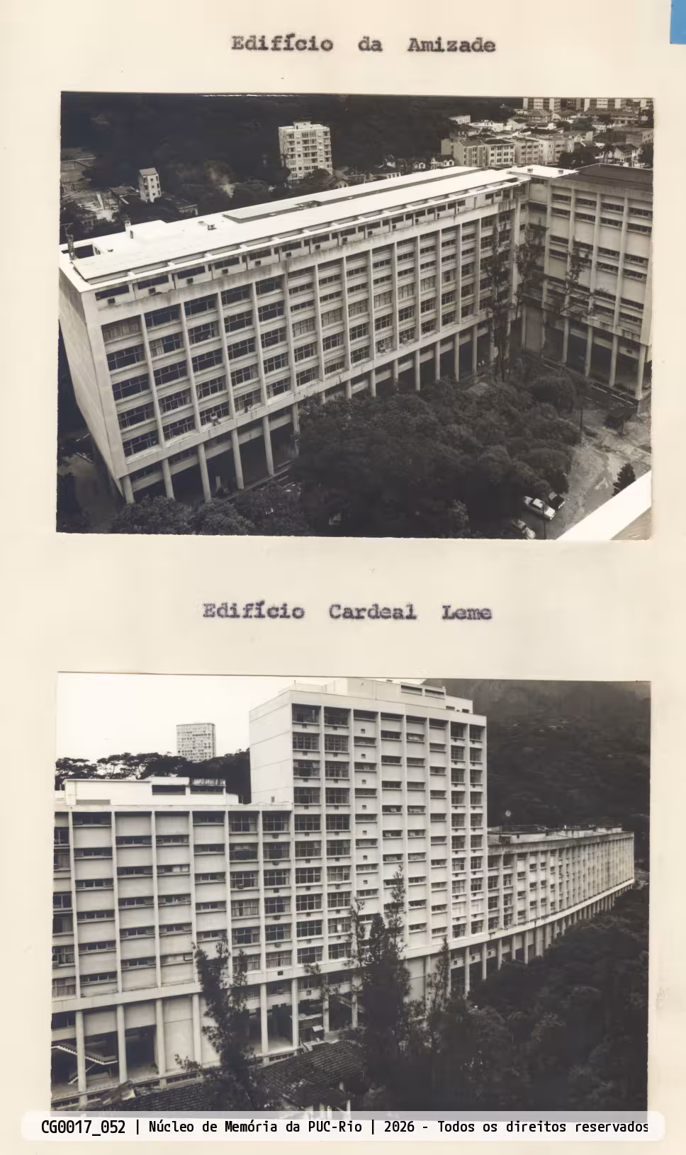 Fotografias do Edifício da Amizade e Edifício Cardeal Leme, visto do alto, um do outro.