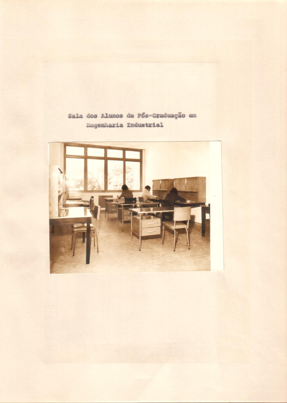 Fotografia da sala dos alunos de Pós-graduação em Engenharia Industrial.