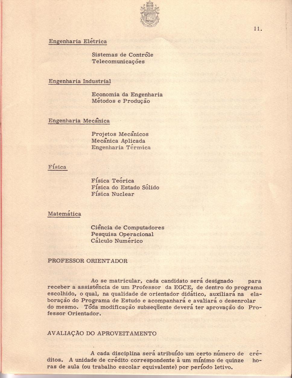 Seção referente aos 'Programas de estudo' no Catálogo oficial da Escola Graduada de Ciências e Engenharia (EGCE), 1968 - 1969.