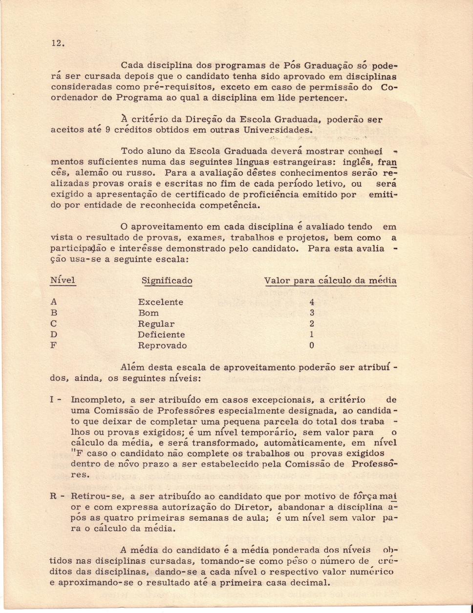 Seção referente aos 'Programas de estudo' no Catálogo oficial da Escola Graduada de Ciências e Engenharia (EGCE), 1968 - 1969.