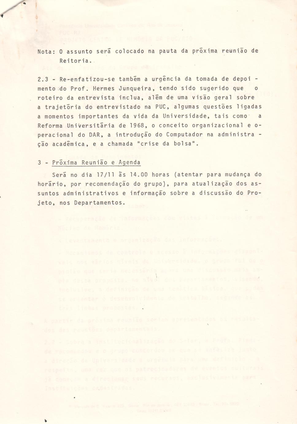 Ata da segunda reunião do grupo de trabalho (continuação). Registrou-se urgência da tomada do depoimento do prof. Hermes Junqueira.
