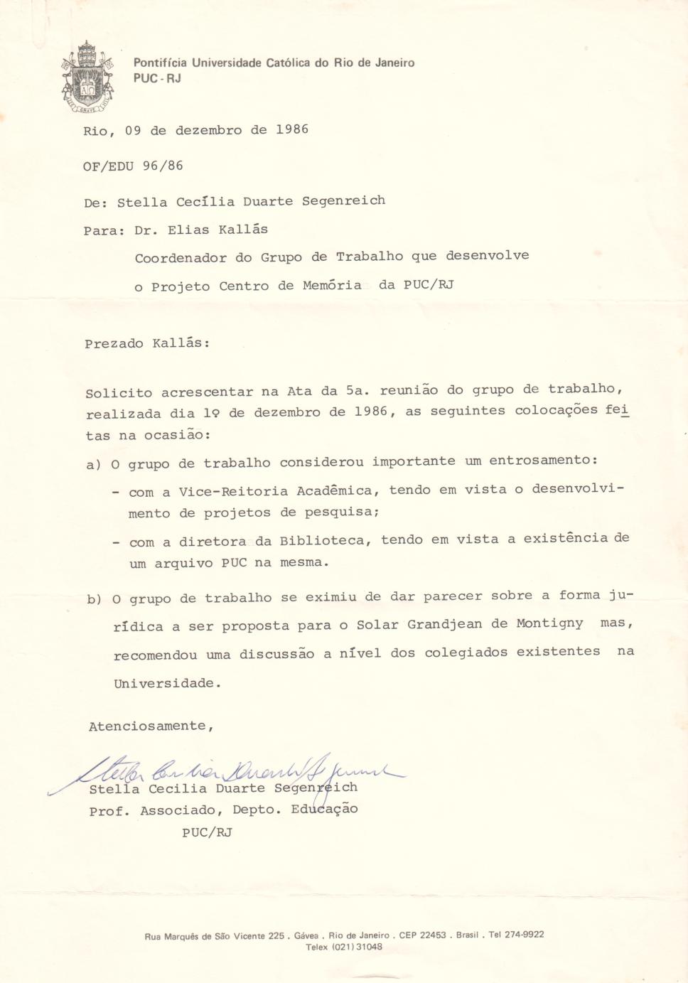 Solicitação, por parte da profa. Stella Cecília Duarte Segenreich, da inclusão de alguns pontos à ata da quinta reunião do grupo de trabalho.