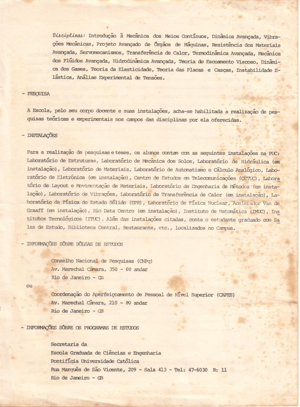 Informativo dos Programas de Pós-Graduação em Ciências e Engenharia da PUC/RJ. Secretaria na sala 413 do Edifício Cardeal Leme. Instalações.