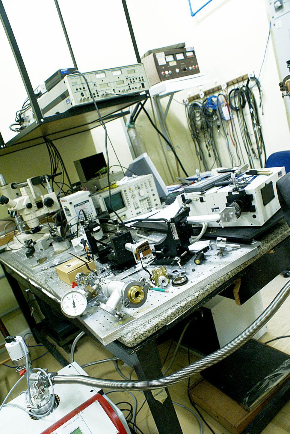 Bancada com instrumentos no Laboratório de Semicondutores.
