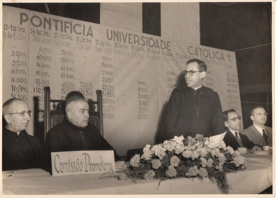Reitor Padre Velloso, S.J., Padre Alonso, S.J., Provincial da Companhia de Jesus, o Núncio Apostólico Carlo Chiarlo, Engenheiro Paulo Sá, Diretor da Escola Politécnica, Engenheiro Carlos Alberto del Castilho, Vice-Diretor da Escola Politécnica.