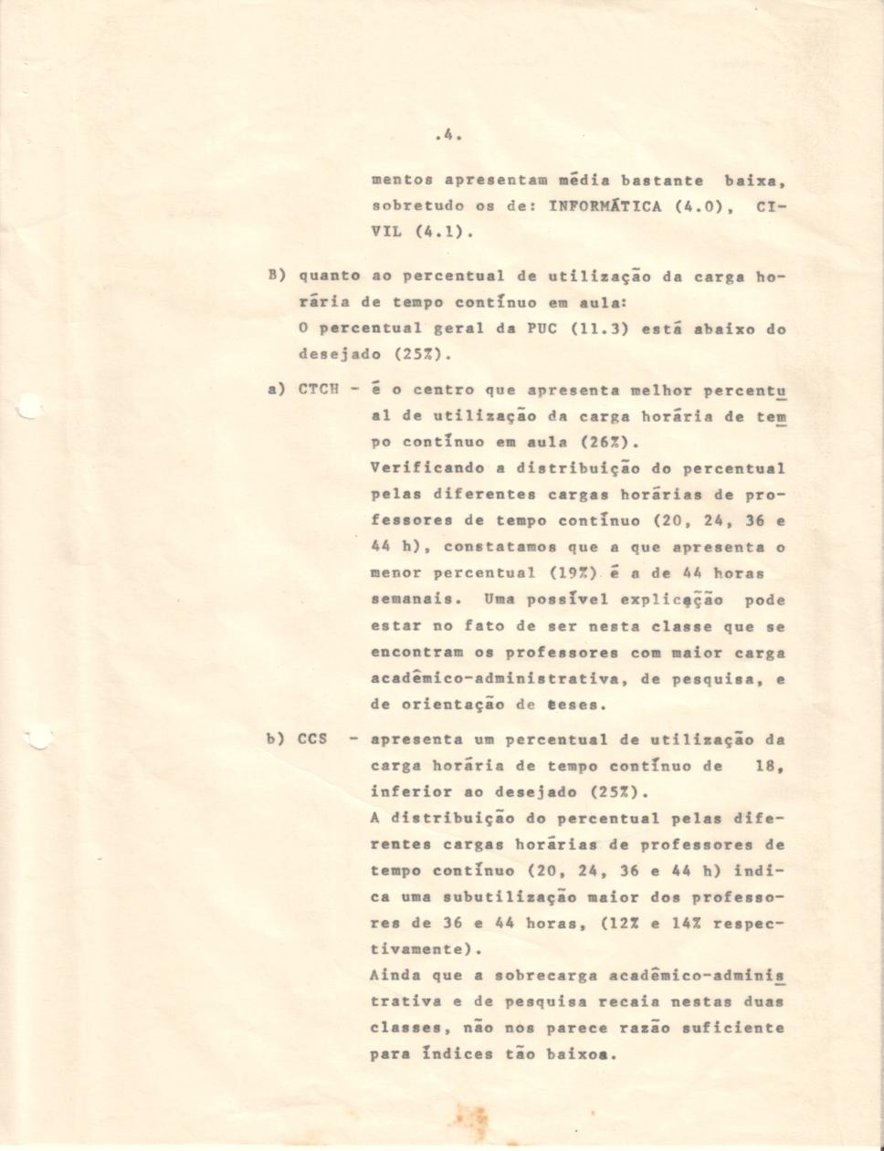 Relatório 09/72 referente às atividades de ensino do primeiro semestre de 1972 na PUC-Rio. O documento traz informações do corpo docente, da produtividade de ensino por Centro, da titulação dos professores, do número de disciplinas e turmas oferecidas, e do número de alunos por centro e por curso. O relatório traz no Anexo III dados do corpo docente, do número de disciplinas e de turmas dos departamentos de Educação, Filosofia, Letras, Psicologia, Teologia, Ciências Jurídicas, Comunicação Social, Economia, História, Geografia, Serviço Social, Sociologia, Física, Informática, Matemática, Química, Engenharia de Metalurgia, Engenharia Civil, Engenharia Elétrica, Engenharia Mecânica, Engenharia Industrial e do CETUC. Há ainda os anexos IV, um quadro comparativo com informações do número de alunos e de aulas por curso, e o V com dados da média de aulas por Centro e por departamentos.