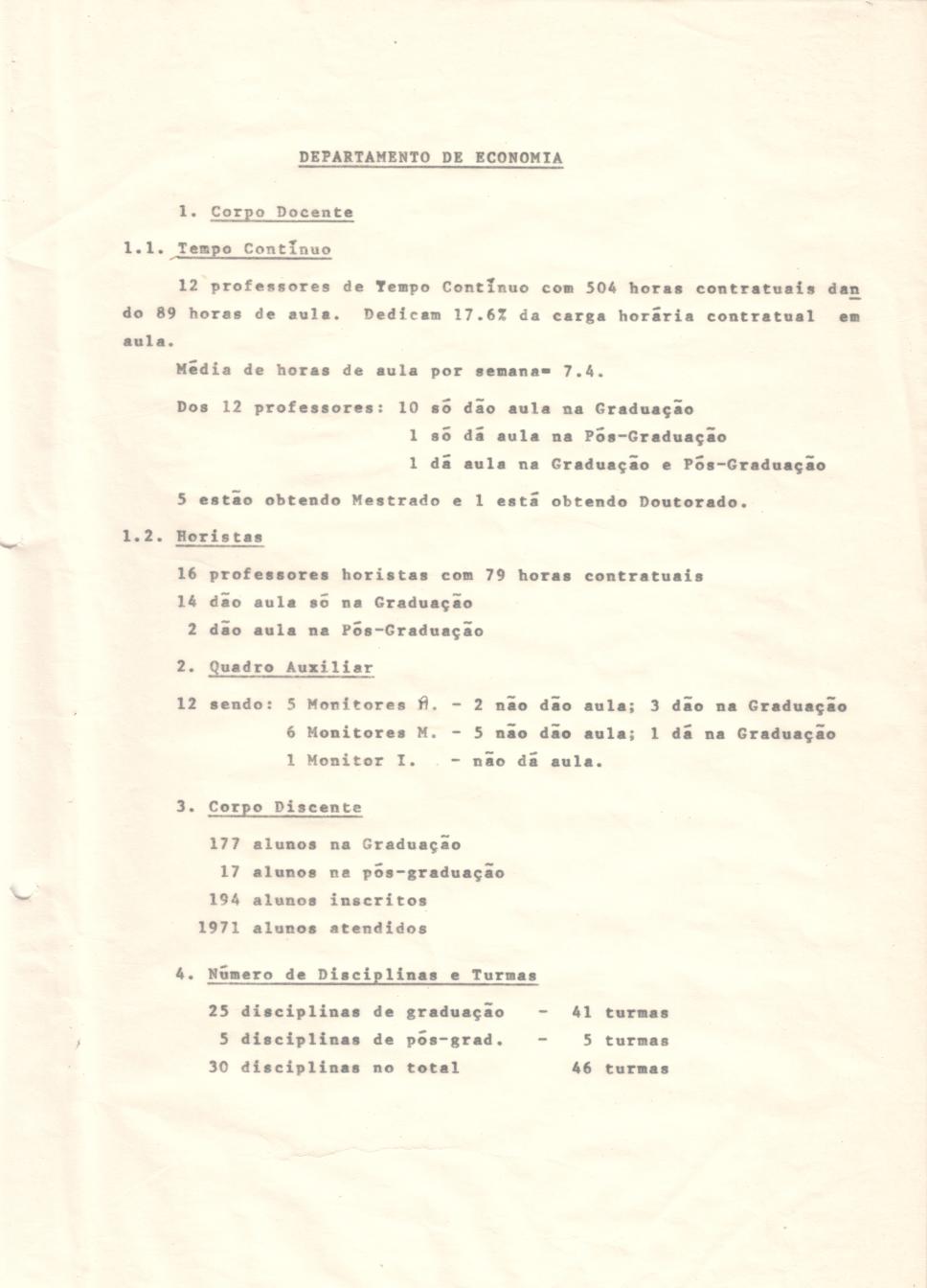 Relatório 09/72 referente às atividades de ensino do primeiro semestre de 1972 na PUC-Rio. O documento traz informações do corpo docente, da produtividade de ensino por Centro, da titulação dos professores, do número de disciplinas e turmas oferecidas, e do número de alunos por centro e por curso. O relatório traz no Anexo III dados do corpo docente, do número de disciplinas e de turmas dos departamentos de Educação, Filosofia, Letras, Psicologia, Teologia, Ciências Jurídicas, Comunicação Social, Economia, História, Geografia, Serviço Social, Sociologia, Física, Informática, Matemática, Química, Engenharia de Metalurgia, Engenharia Civil, Engenharia Elétrica, Engenharia Mecânica, Engenharia Industrial e do CETUC. Há ainda os anexos IV, um quadro comparativo com informações do número de alunos e de aulas por curso, e o V com dados da média de aulas por Centro e por departamentos.