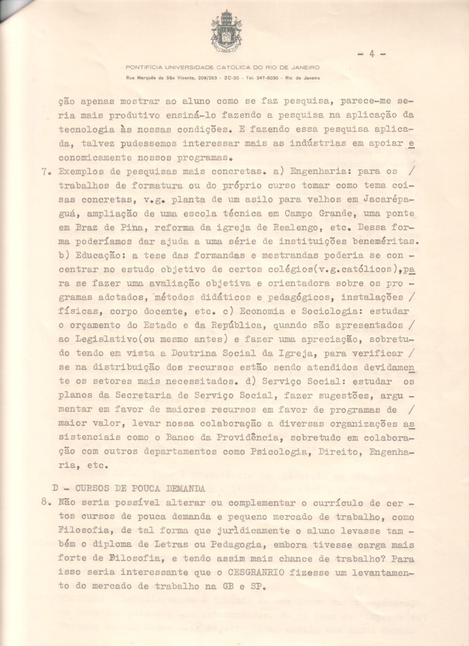 Coleção Observações do Pe. Mendonça sobre a PUC-Rio. Código exclusivo cg0030_004 Data da criação Ano 1973 Data de criação Seg, 01/01/1973 - 12:00 Identificação Original Observações do Pe.Mendonça sobre a PUC-RJ Descrição p.4