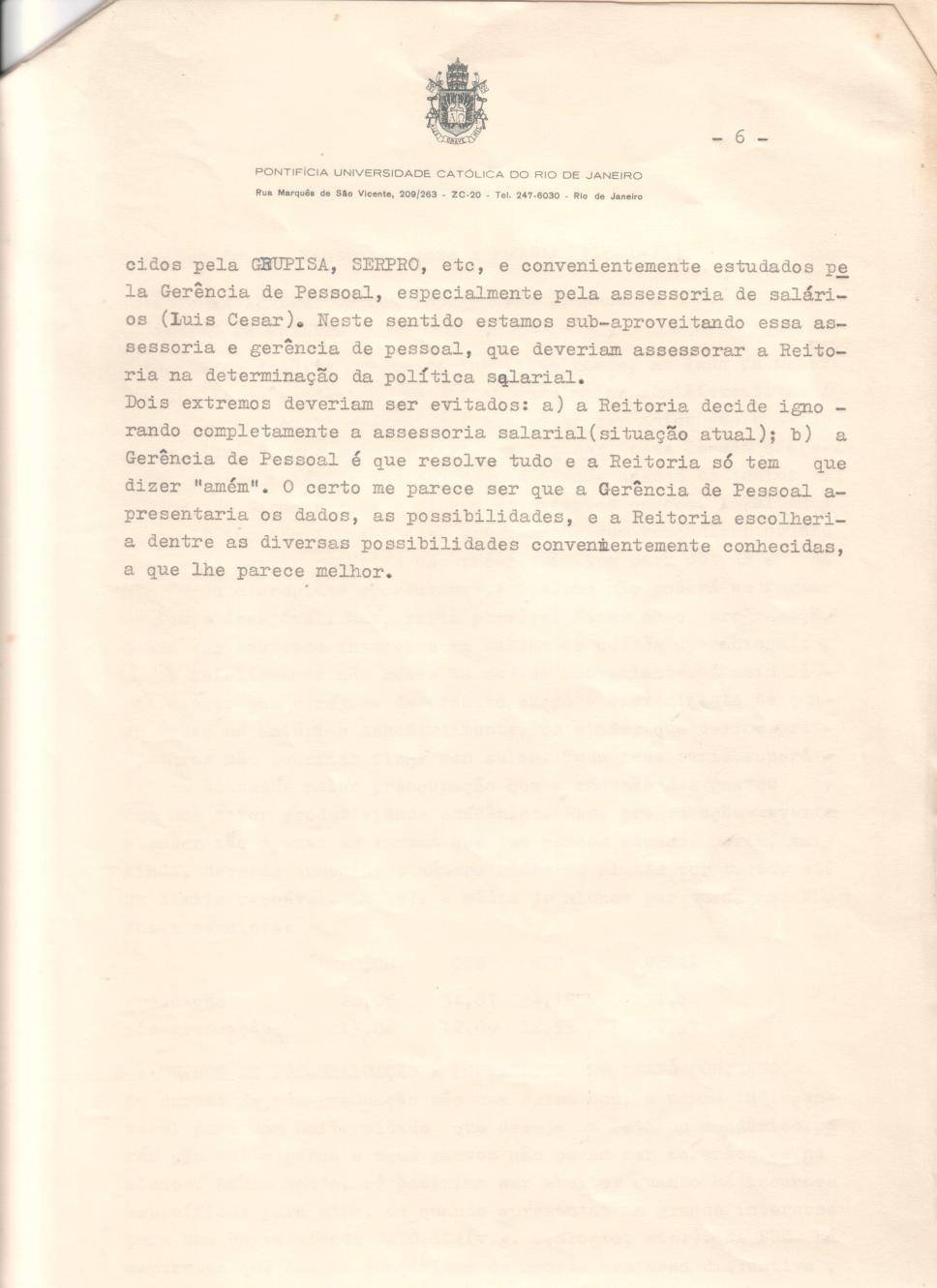 Coleção Observações do Pe. Mendonça sobre a PUC-Rio. Código exclusivo cg0030_006 Data da criação Ano 1973 Data de criação Seg, 01/01/1973 - 12:00 Identificação Original Observações do Pe.Mendonça sobre a PUC-RJ Descrição p.6