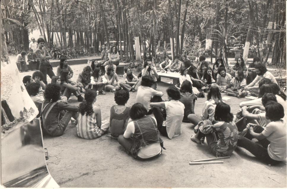 Alunos do Departamento de Artes reunidos em atividade artística no 1º Projeto Funarte.