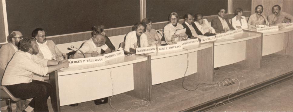 À esquerda da mesa, Jurgen Heye (Letras), no lado direito da mesa, Gilberto Mendonça Telles, Affonso Romano de Sant anna, Ferreira Gullar