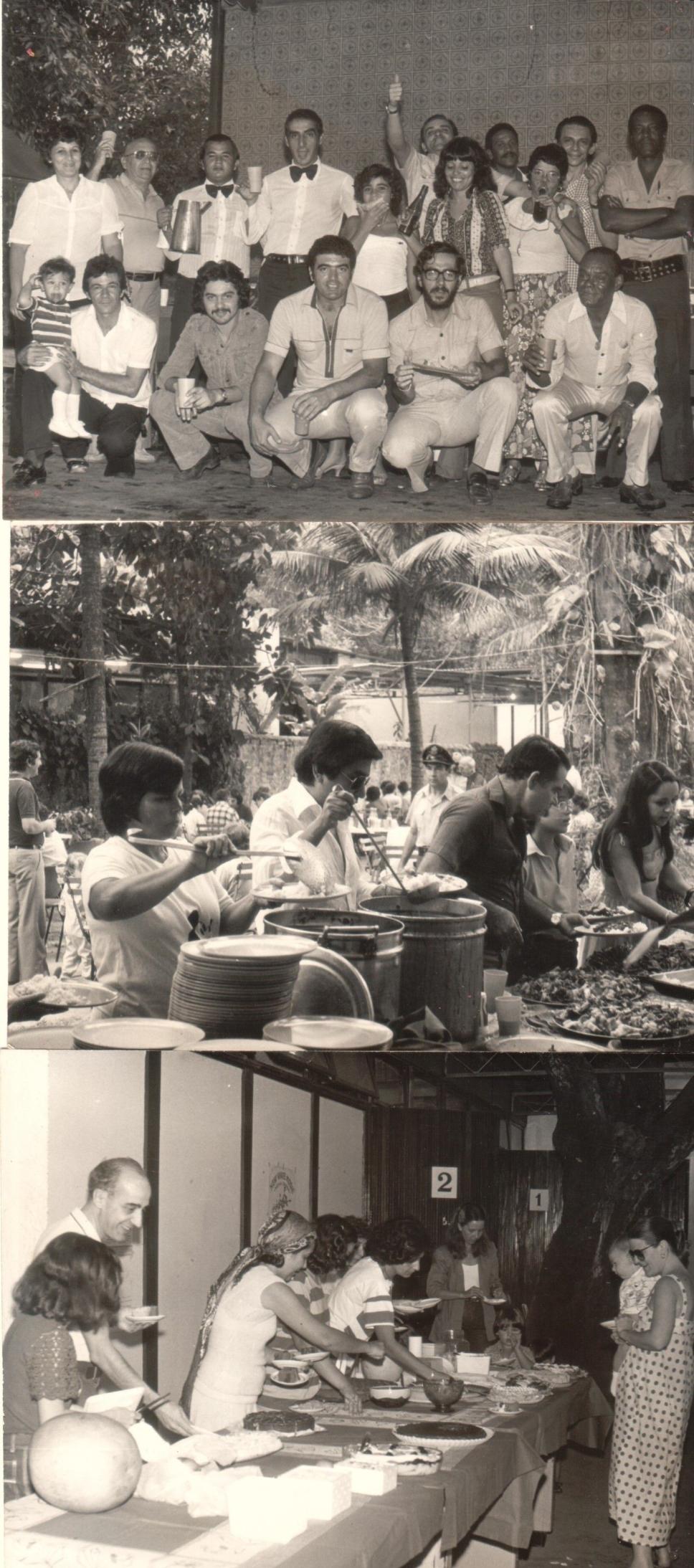 Almoço de confraternização pelo dia dos professores. Feijoada. Montagem com três fotos. Organizado pela Vice-Reitoria Comunitária.