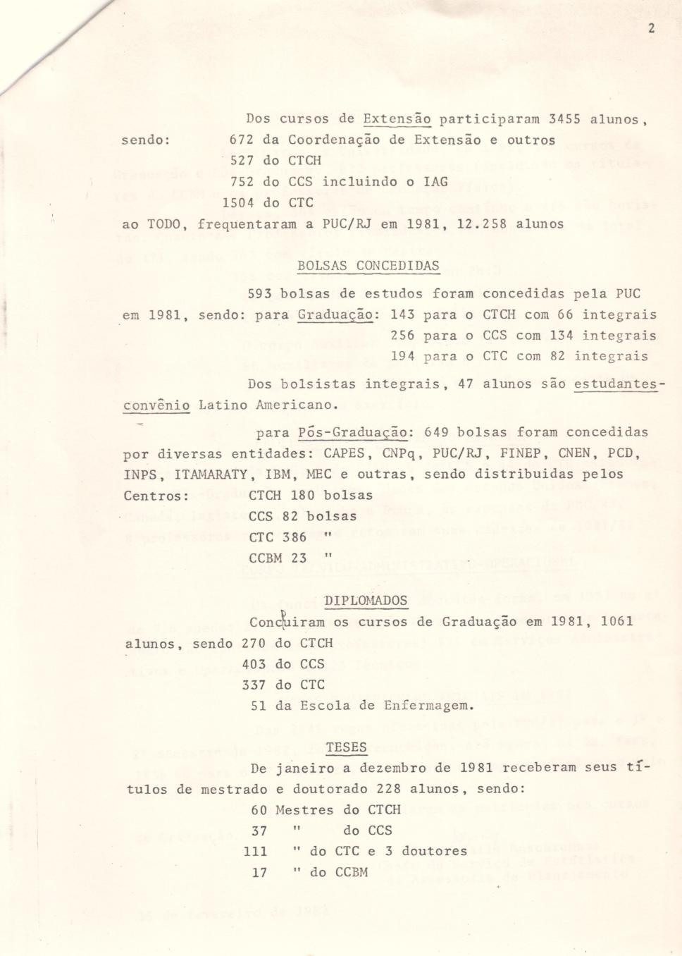 Subsídios para o Relatório do Reitor 1981 - Jenny Valle Mascarenhas (Chefe do Serviço de Estatística da Assessoria de Planejamento) - p.2.
