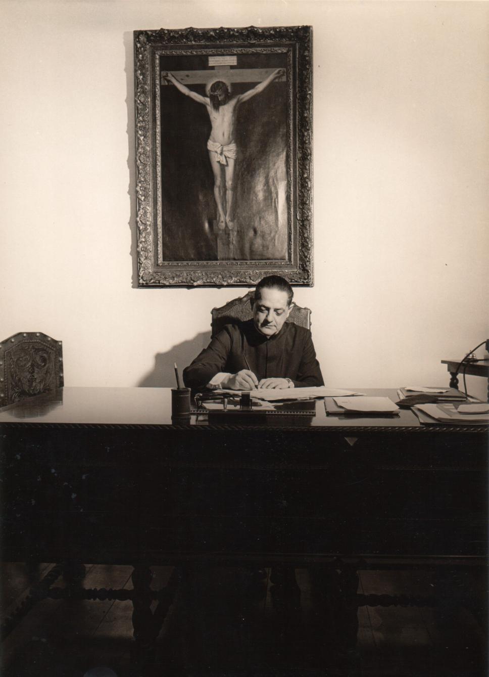 Padre Laércio Dias de Moura S.J. em sua mesa de trabalho.