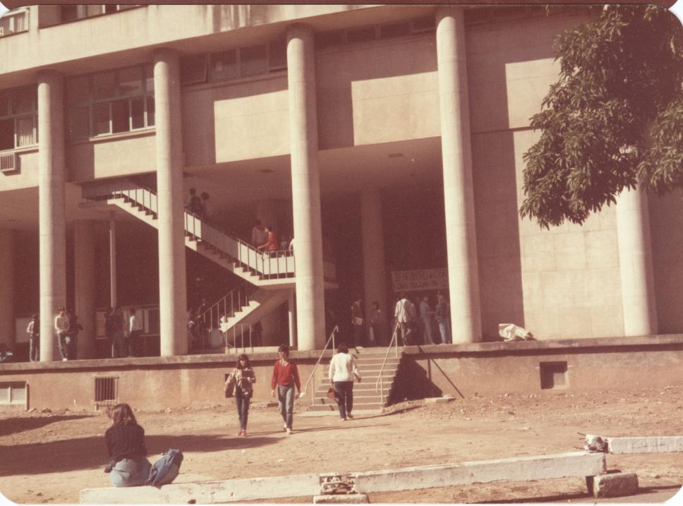 Acesso ao bloco da Física. Ainda não haviam sido plantados os jardins em frente ao prédio.