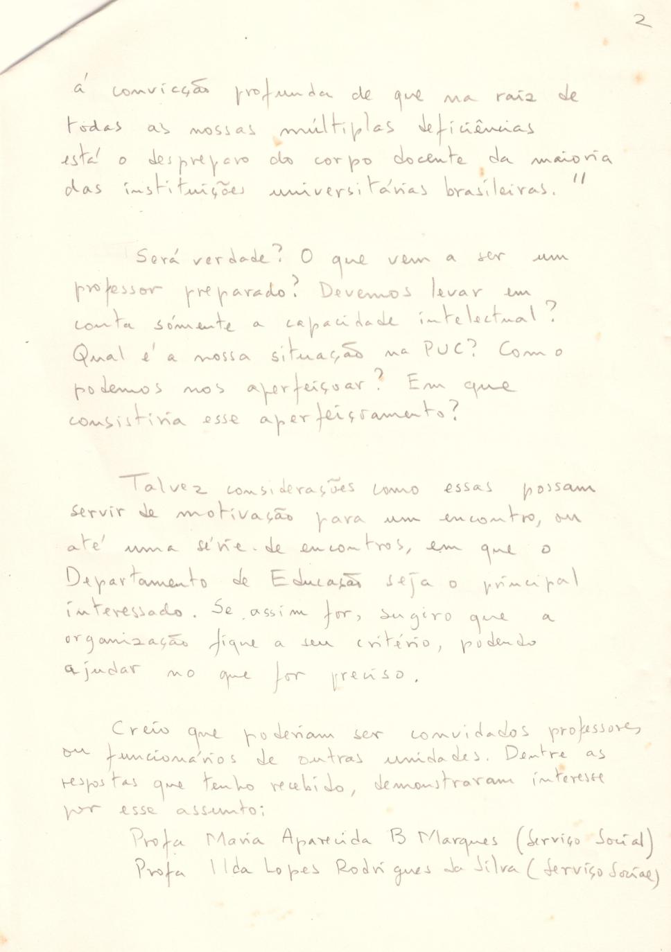 Rascunho de carta do Prof. Paulo Novaes à Profa. Hedy Silva Ramos (EDU).