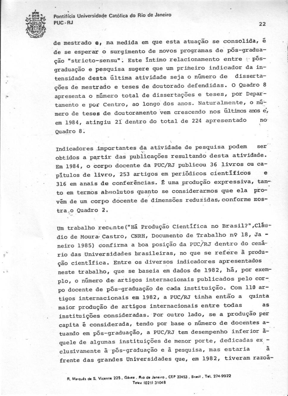 Coleção Relatório ao MEC - Pleitos da PUC/RJ Código exclusivo cg0042_024 Data da criação Ano 1985 Data de criação Ter, 01/01/1985 - 12:00 Referente a Reitoria Identificação Original VI.8 Descrição p.22