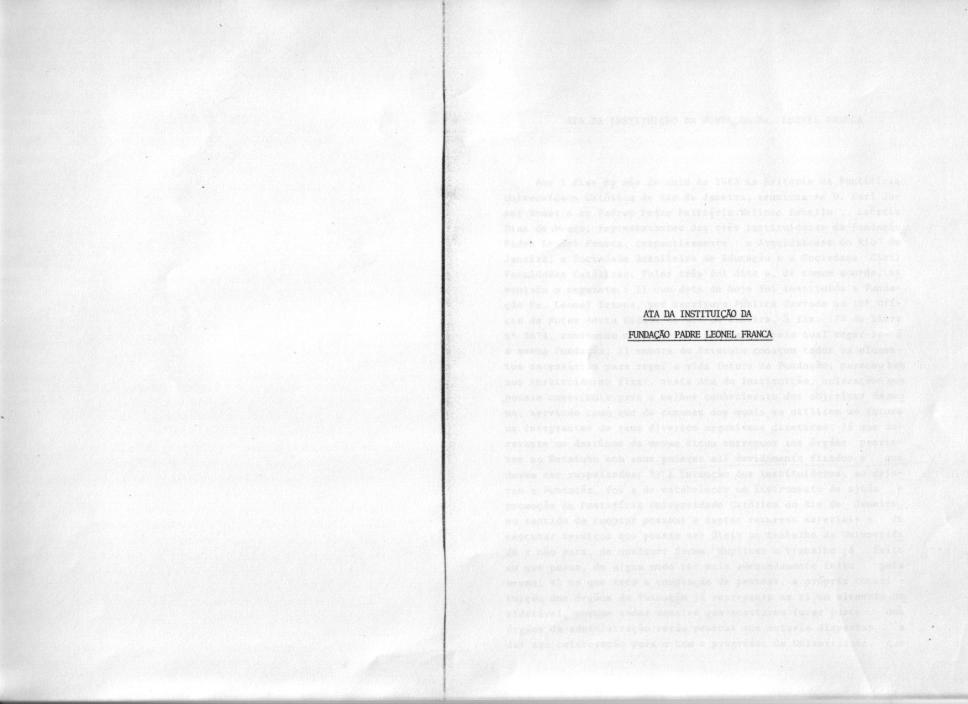 Coleção Fundação Padre Leonel Franca - Ata de Instituição, Estatuto, Regulamento Interno Código exclusivo cg0043_002 Data da criação Ano 1984 Data de criação Dom, 01/01/1984 - 12:00 Natureza do documento imagem Referente a Fundação Padre Leonel Franca (FPLF) Identificação Original Fundação Padre Leonel Franca Descrição capa 2