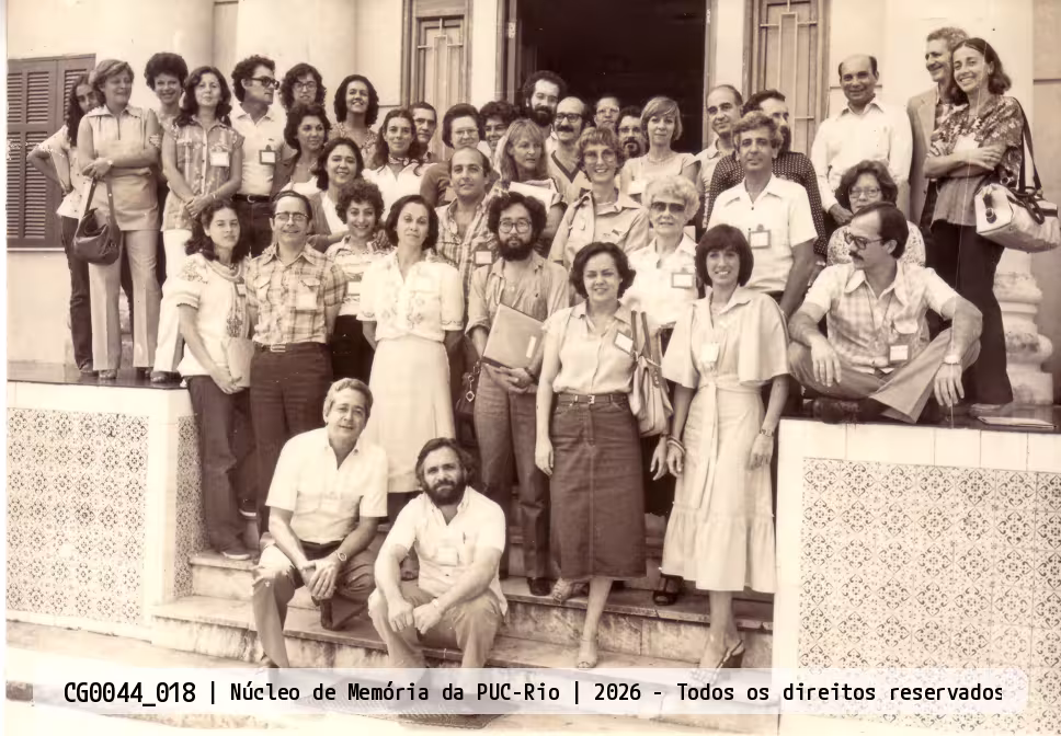 Grupo formado pelo reitor, pelos diretores de departamentos, professores, coordenadores e alunos representantes do corpo discente participantes do Seminário Interno do CTCH, realizado na Casa da Gávea nos dias 27 e 28 de setembro de 1979. O seminário promoveu a troca de informações e a integração entre os departamentos constitutivos do CTCH e seus respectivos diretores para a elaboração de um Plano Diretor da PUC-Rio.