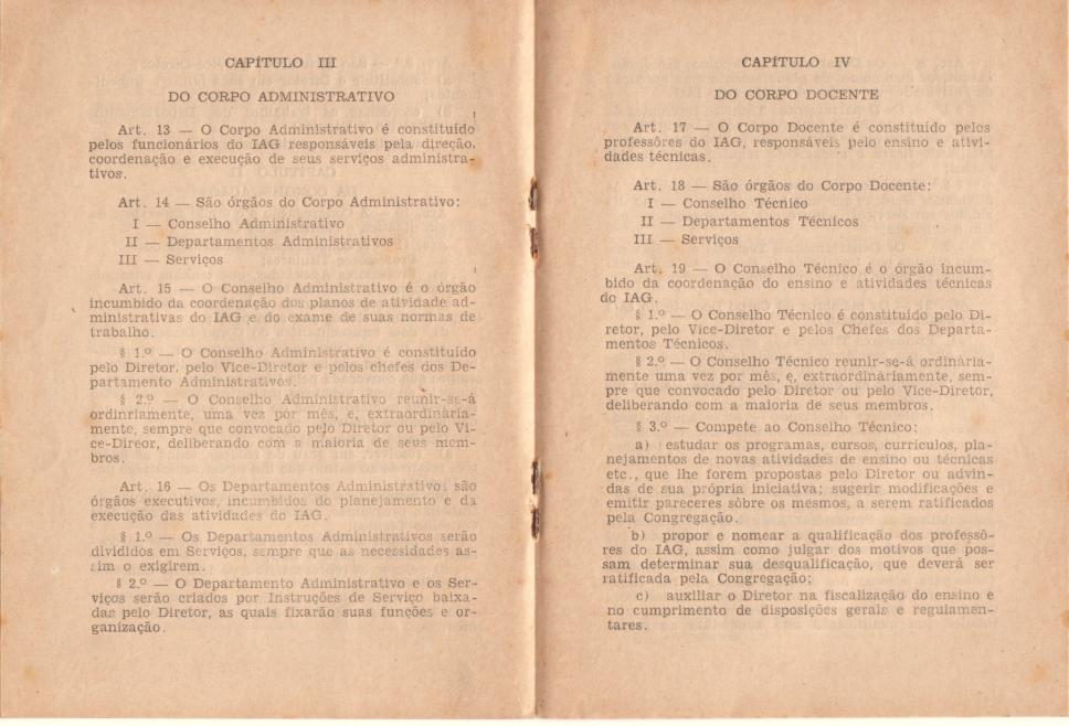 Regimento do Instituto de Administração e Gerência. Do corpo administrativo; do corpo docente.