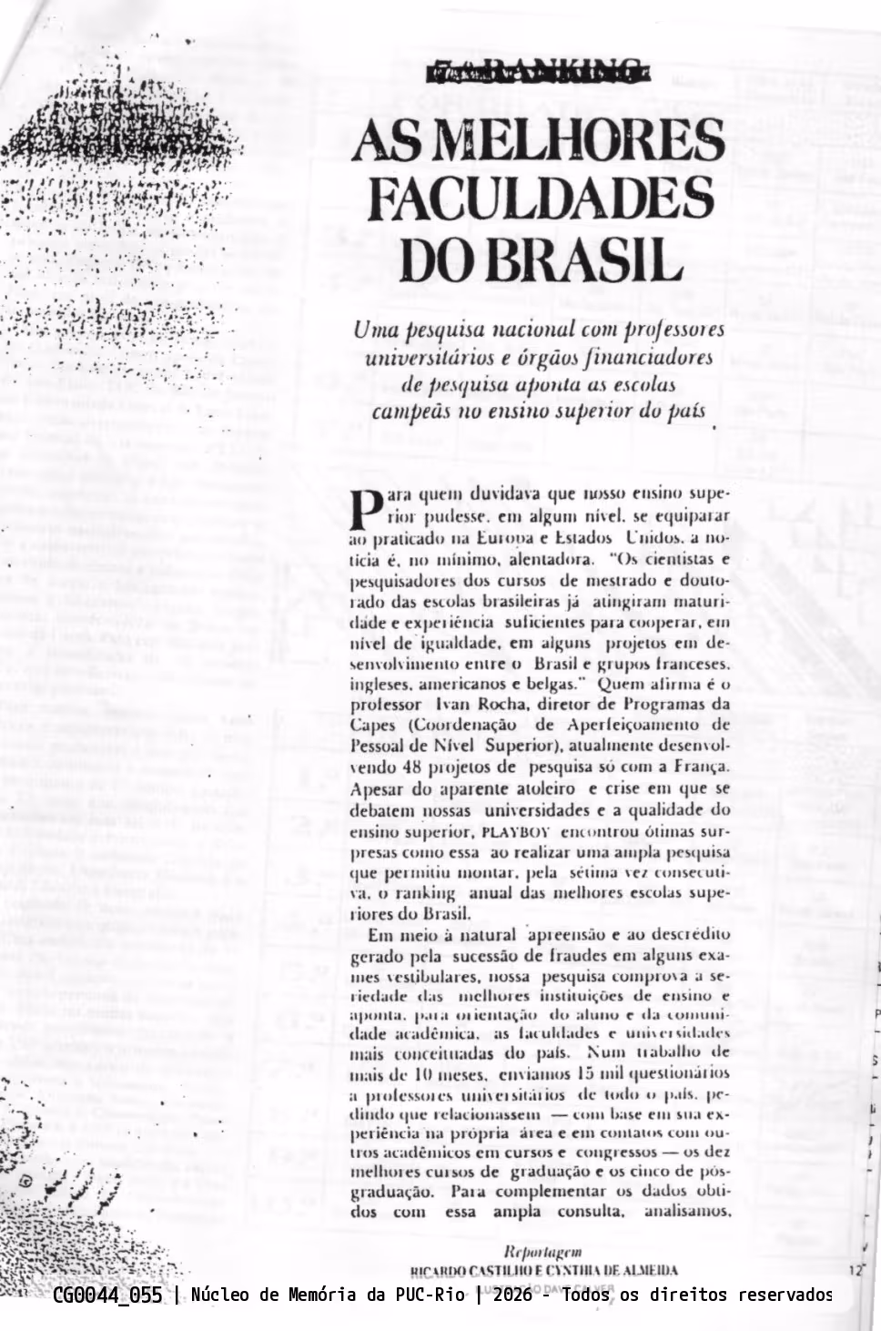 Artigo da Revista Playboy sobre os melhores cursos de graduação e pós-graduação do Brasil.