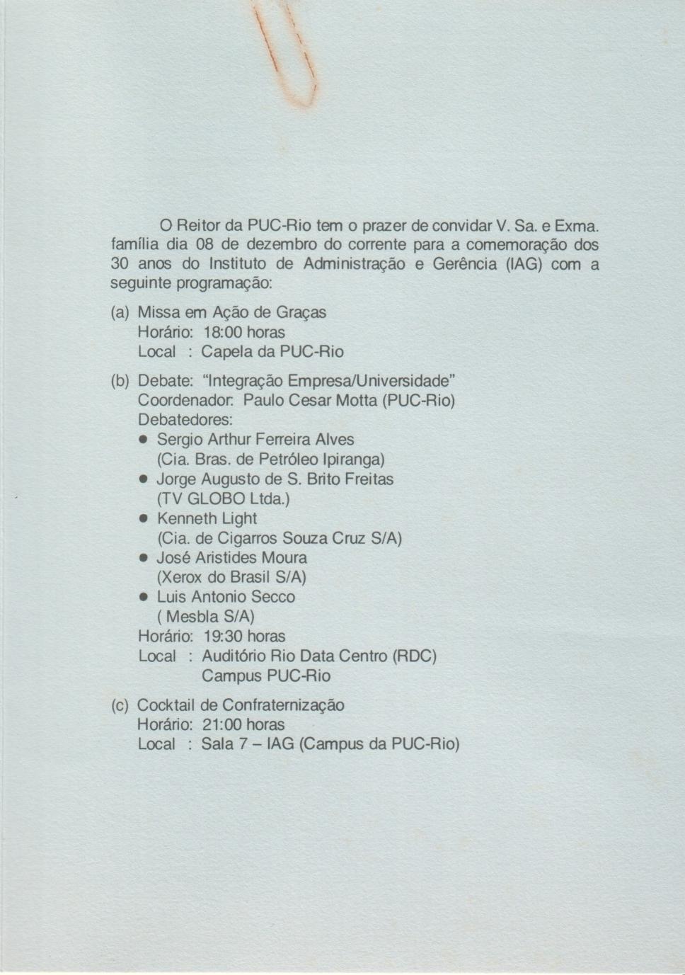 Paulo César Motta (IAG), Sérgio Arthur ferreira Alves (Cia. Bras. de Petróleo Ipiranga), Jorge Augusto de S. Brito Ferreira (TV GLobo), Kenneth Light (Cigarros Souza Cruz S/A), et all.