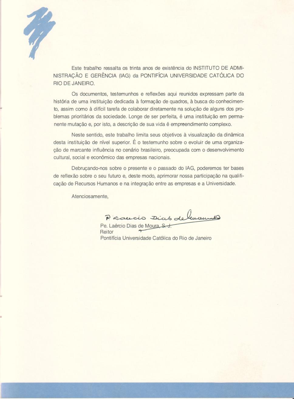 Carta de apresentação do reitor pe. Laércio Dias Moura, S.J. in 30 anos do IAG.