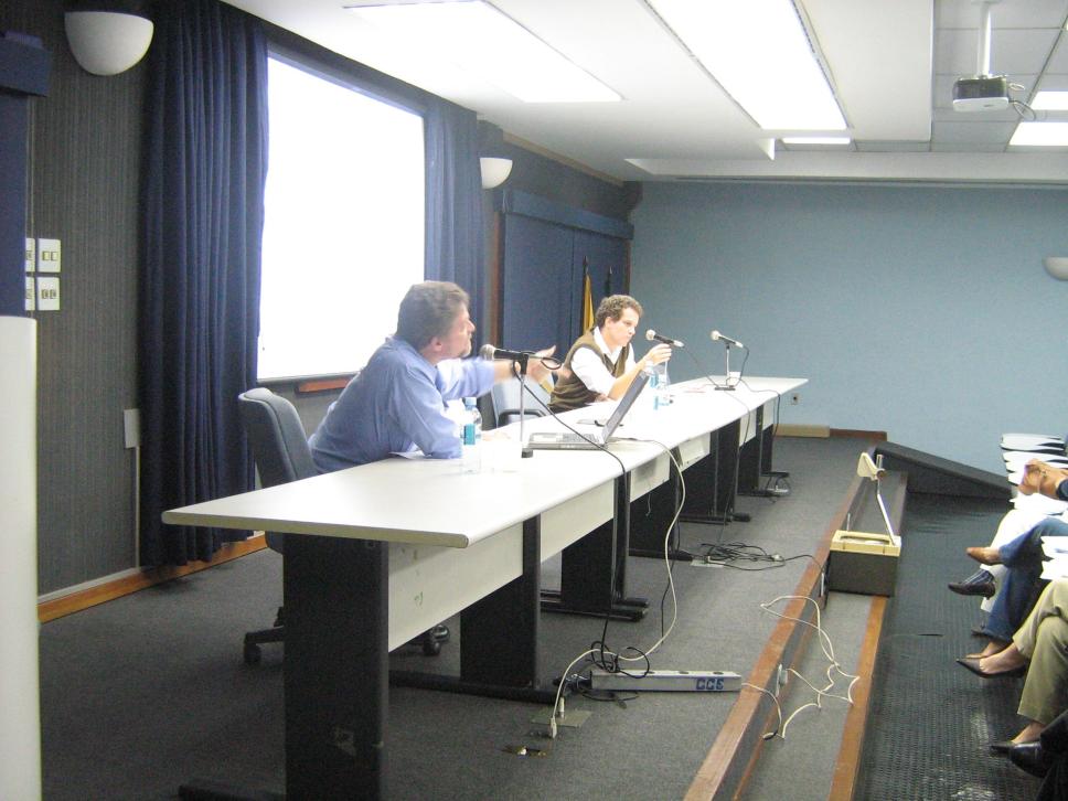 Palestrantes do Seminário: prof. Ricardo Ismael (SOC) e prof. Marcelo Burgos (SOC).