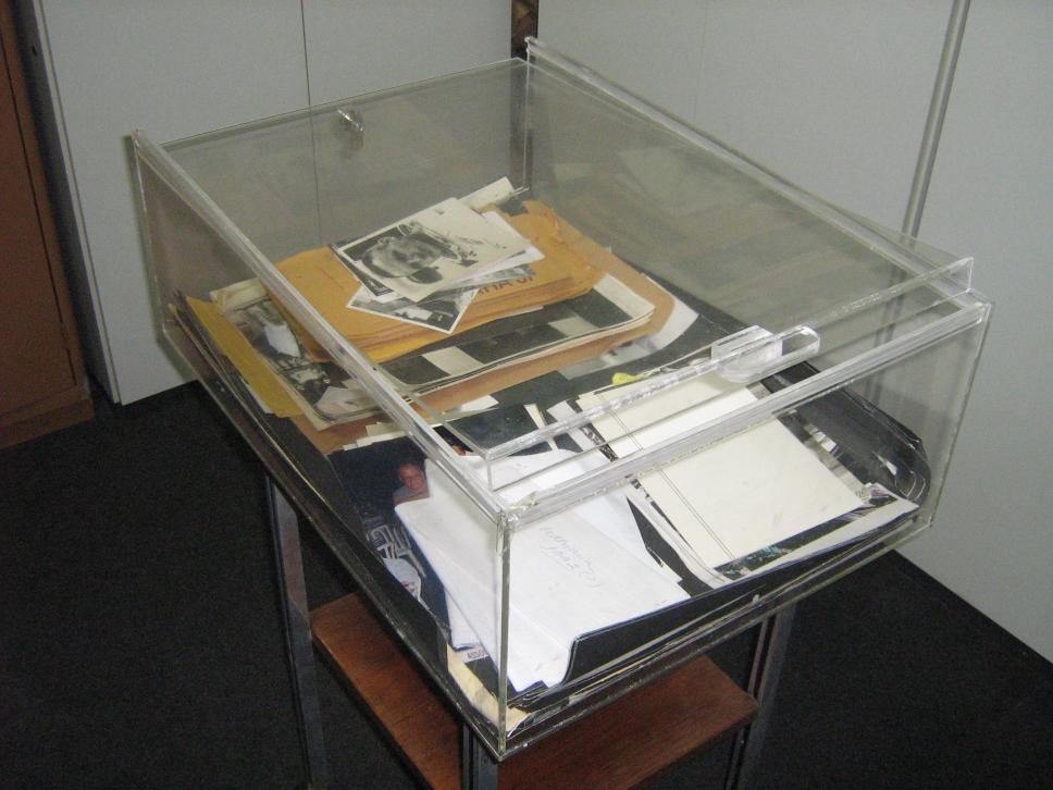 Arquivo de acrílico onde estão armazenadas algumas fotos na Reitoria.
