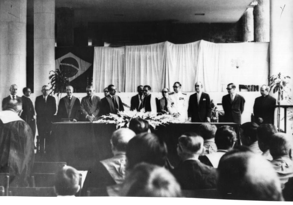 Comemoração do Jubileu de Prata da PUC-Rio. Na ocasião, com a presença do Embaixador da Alemanha Ocidental, foi inaugurado o prédio da Biblioteca Central, ainda em obras, e houve a entrega das medalhas Cardeal Leme aos professores e o descerramento das placas aos benfeitores.