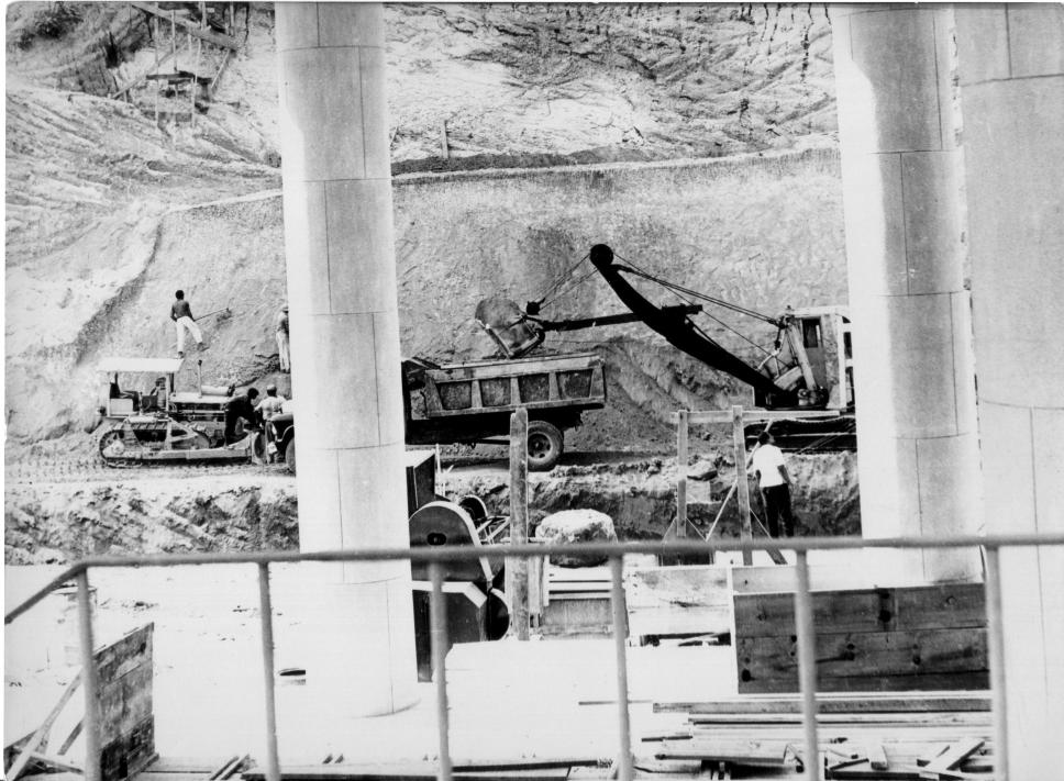 Desbaste do morro para a construção do prédio para a instalação do acelerador Van de Graaff.