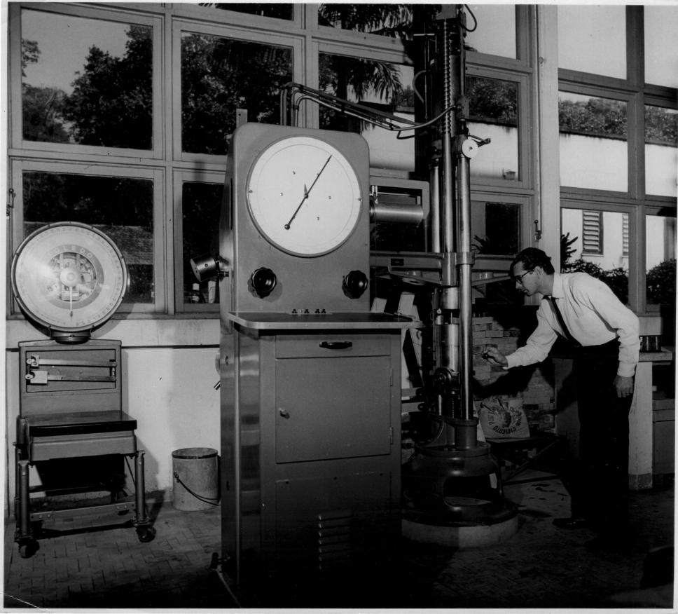 Técnico operando equipamento em um dos laboratórios da PUC-Rio.