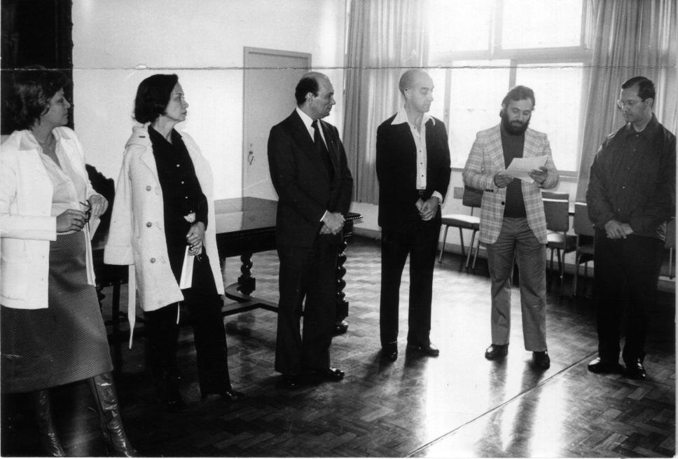 Da esq. para dir.: profa. Lilian Mary de Sá Campos (LET), profa. Maria Cândida Bordenave (LET), reitor Pe. João Augusto Anchieta Amazonas Mac Dowell S.J., prof. Emanuel Bouzon (HIS), prof. Fernando Moreira e pe. José de Souza Mendes S.J.