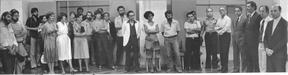 Reinaldo Castro Souza (ELE), Marcelo (?), Josiete Gibara (?), Angela(?), prof. Cardoso (?), prof. Adilson José Curtius (QUI), Ricardo Peres (?), Edil (?), Therezinha Souza da Costa (INF), prof. Paulo Jorge Paes Leme (MAT), Nathan (?), José Ribamar de Franca Mendes (?), pe. Emanuel Bouzon (HIS), Pe.Javier Enciso, Heitor Moreira Herrera (EGCE), Ronaldo Barcelos de Pinho (Vice-reitor), prof. Luiz Bevilacqua (MEC), prof. João José Rodilles Fraústo da Silva, pe. João Augusto Anchieta Amazonas Mac Dowell, S.J.