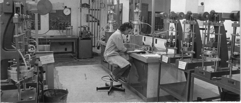 Pesquisadora no Laboratório de Mecânica dos Solos.