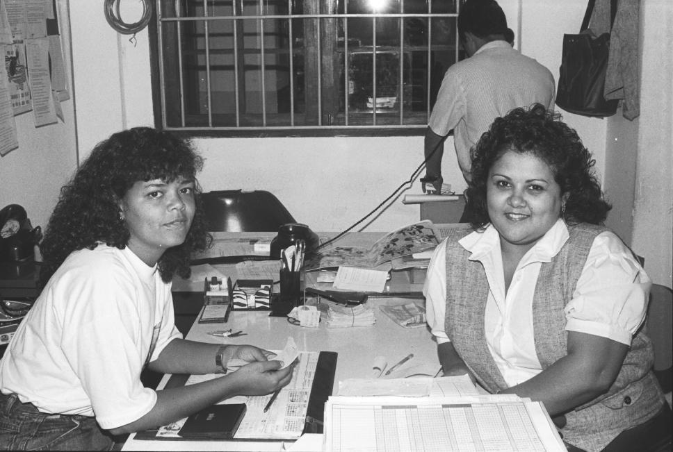 As nutricionistas Denise Lopes e Patrícia Cunha, responsáveis pelo cardápio e pela equipe do Bandejão em 1993.