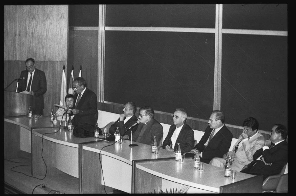 O prof. Augusto Sampaio discursa na posse do pe. Jesús Hortal S.J. como novo reitor da PUC-Rio.