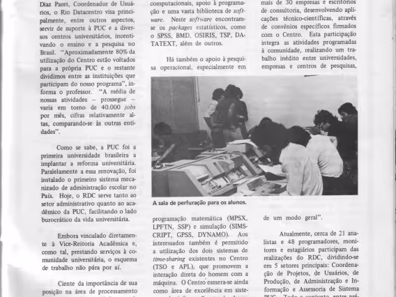 cg0054_003 | 8/1974 | Cont.matéria - 14 anos de pioneirismo - foto da sala de perfuração de cartões |